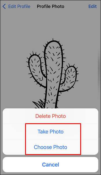 Toque na moldura da foto do perfil e depois toque em Editar.