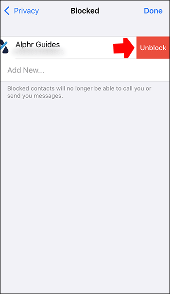 Toque no botão vermelho”Desbloquear”ao lado do nome.