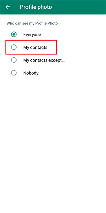 Novamente, qualquer usuário do WhatsApp, incluindo seus contatos e você mesmo, pode optar por não exibir a foto do perfil. Talvez você queira apenas que seus contatos vejam sua foto de perfil, não alguém que adquiriu seu número de telefone recentemente.
