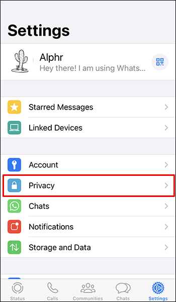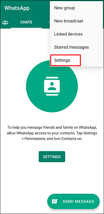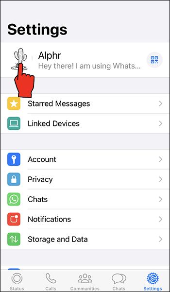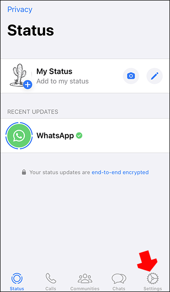 Inicie o WhatsApp e toque no botão”Configurações”na parte inferior da tela.