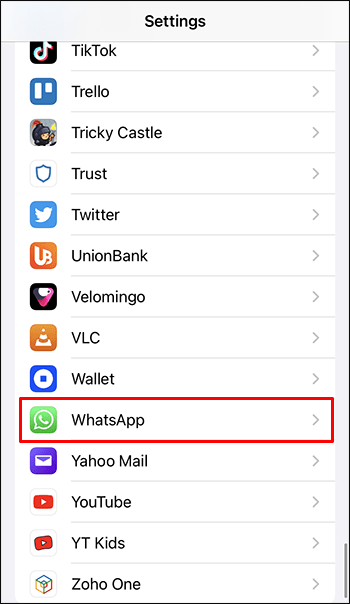 Abra Configurações, role para baixo e selecione “ WhatsApp”da lista.
