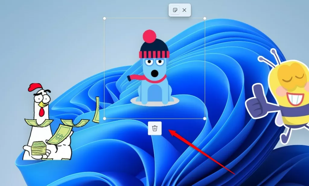 Passe o mouse ou clique em um adesivo em sua área de trabalho que deseja remover ou excluir. Em seguida, clique no botão Excluir para removê-lo.