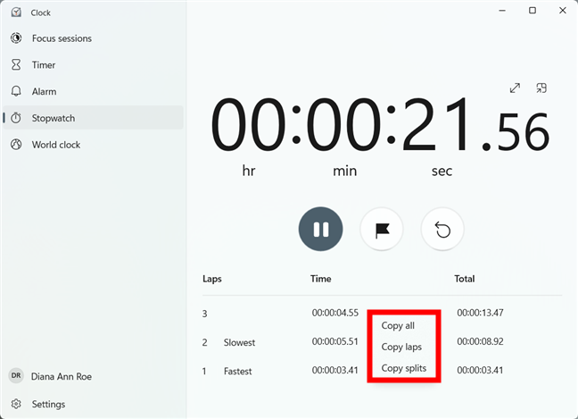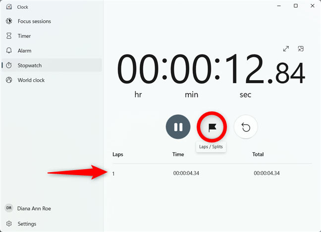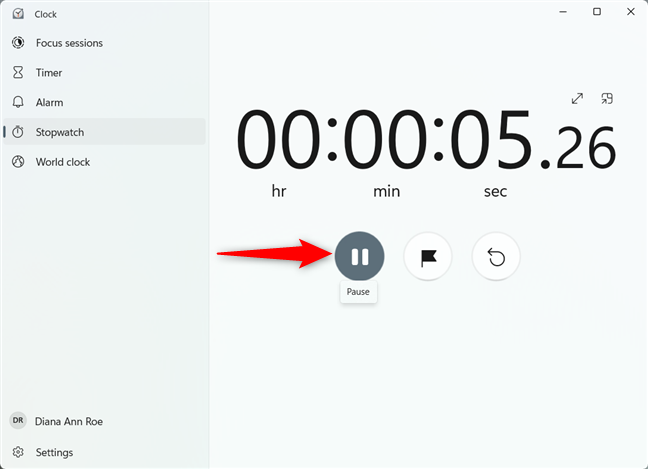Pausar o cronômetro do Windows 11 ou Windows 10