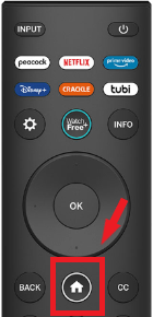 Pressione o botão “Início”para modelos mais recentes) ou o botão”V”(Vizio Internet Apps) no controle remoto.