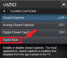 Certifique-se de que as legendas ocultas digitais estejam definidas (geralmente CS1) e selecione”Estilo digital.”