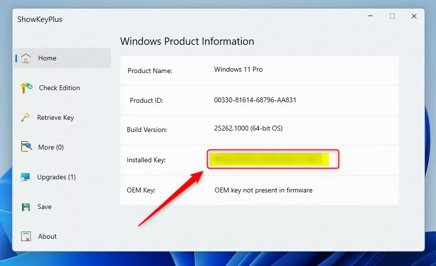 aplicativo showkeyplus do Windows para mostrar a chave do produto