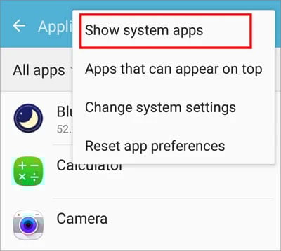 Toque em Mais no canto superior direito. Em seguida, toque em Mostrar aplicativos do sistema.