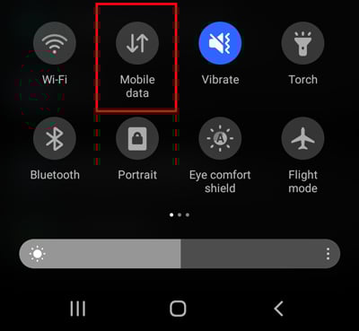 Abra o painel de notificação deslizando de cima para baixo. Em seguida, ative Dados móveis. (Desligue seu Wi-Fi se estiver ligado)
