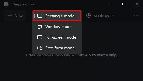 O modo de tela cheia funciona exatamente como Windows + Print Screen. Ele tira um instantâneo de todas as suas telas. O modo retangular oferece controle total sobre a área onde você deseja tirar uma captura de tela. No entanto, este modo captura apenas a tela em um retângulo.