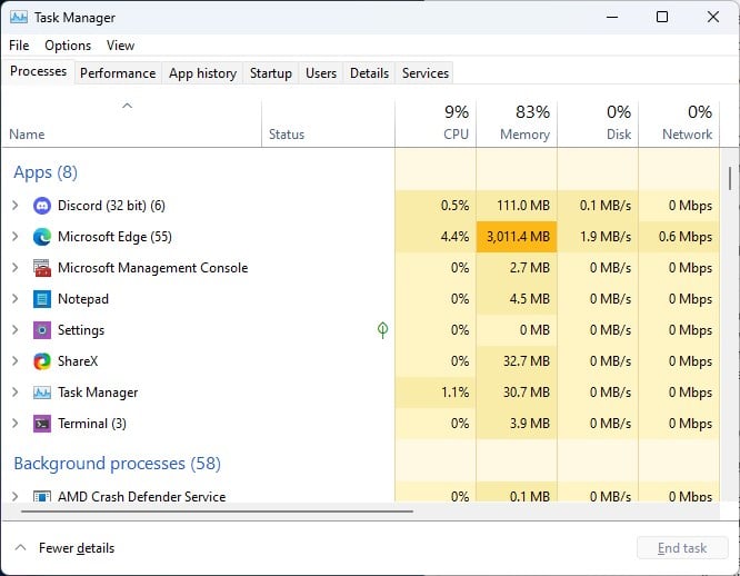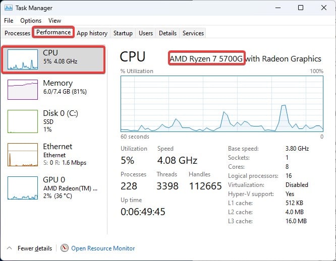 De No gerenciador de tarefas, você não apenas pode ver os processos em segundo plano dos aplicativos em seu dispositivo, mas também obter informações sobre a CPU, como especificações e utilização.