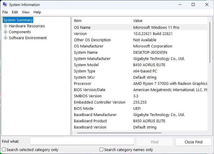 Pressione a tecla Windows + R, digite msinfo32 e pressione Enter para abrir as informações do sistema.