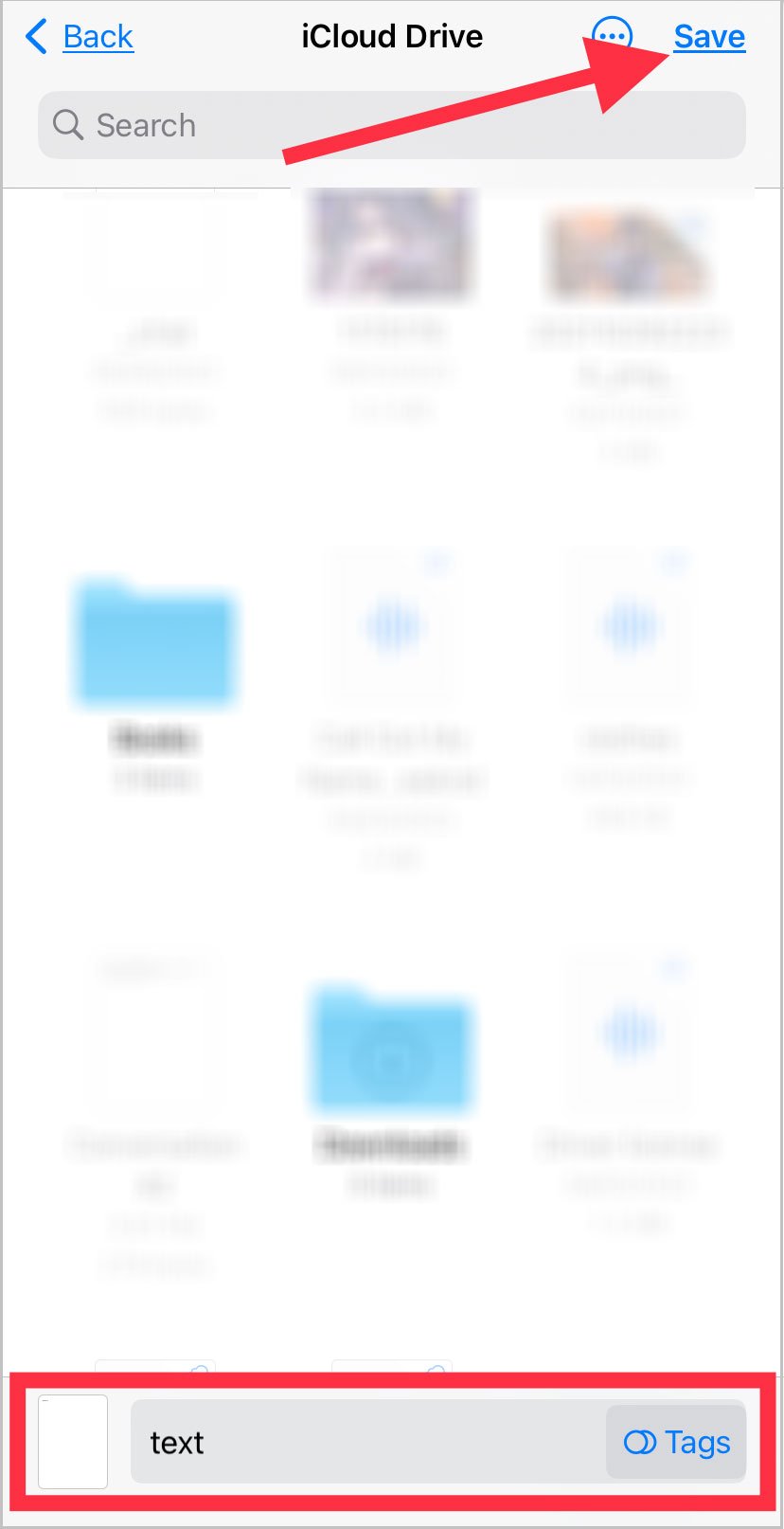 Observação: as etapas para salvar textos no iCloud são semelhantes até a etapa 3, conforme mostrado na solução anterior acima.