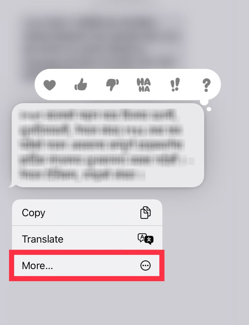 Abra qualquer conversa e pressione e segure qualquer texto. Toque em Mais.