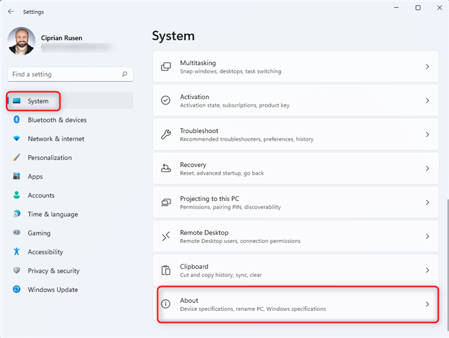 Nas configurações do Windows 11, vá para Sistema > Sobre