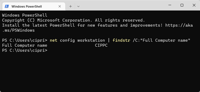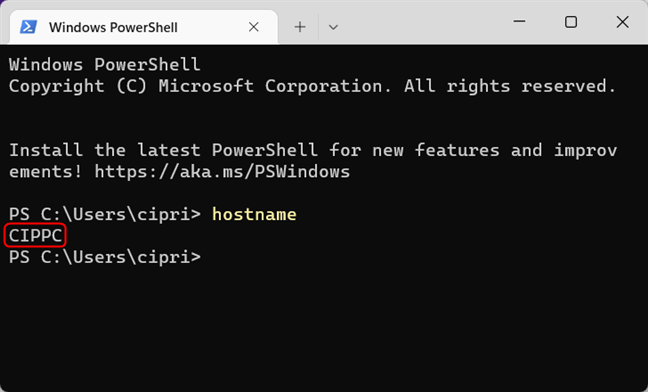 Como exibir o nome do computador usando o Prompt de Comando, Powershell ou Terminal do Windows