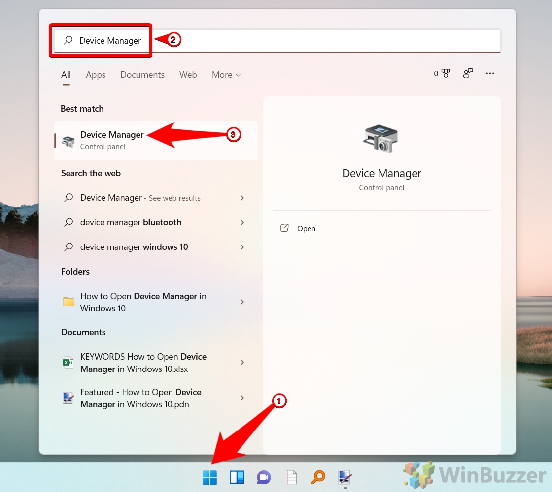 Clique no botão ícone”Windows”, digite”Gerenciador de dispositivos”e selecione”Gerenciador de dispositivos”no resultado