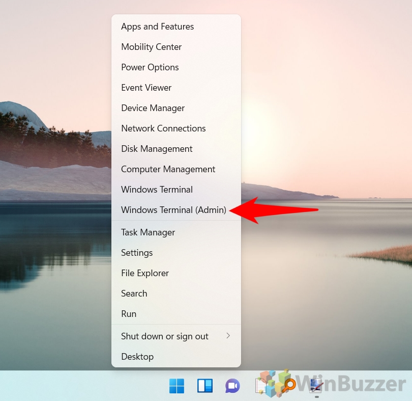 Clique com o botão direito do mouse no ícone”Windows”e selecione”Windows Terminal (Admin)”no menu de contexto