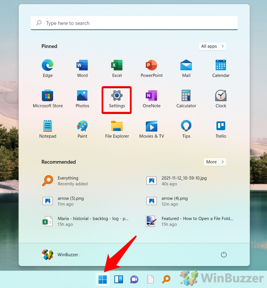Clique no botão”Windows”ícone e selecione”Configurações”no pi Aplicativos selecionados no menu Iniciar