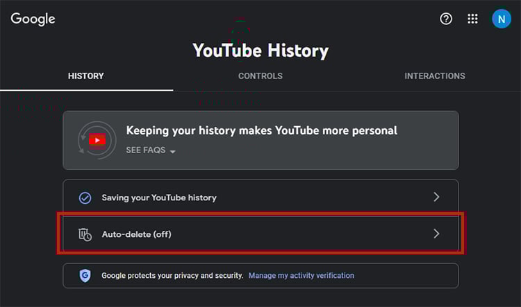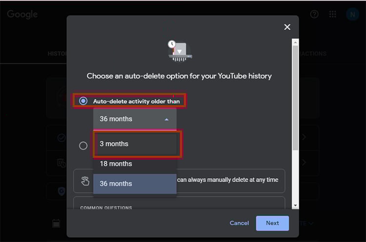 Para usuários que não desejam para limpar manualmente o histórico do YouTube, há uma opção para excluí-lo automaticamente após o tempo predefinido. Você pode ativar esta configuração em Minha atividade no Google.