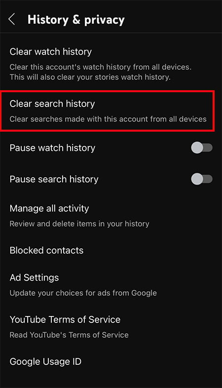 Você pode limpar seu histórico de pesquisa do YouTube para evitar recomendações de vídeos semelhantes. Depois de limpar seu histórico de pesquisa, ele não exibirá suas pesquisas anteriores. Você só pode remover listas de pesquisa individuais da barra de pesquisa.