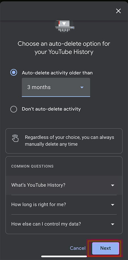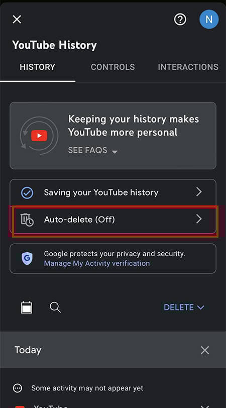 Para usuários que não desejam para limpar manualmente o histórico do YouTube, há uma opção para excluí-lo automaticamente após o tempo predefinido. Você pode ativar esta configuração em Minha atividade no Google.