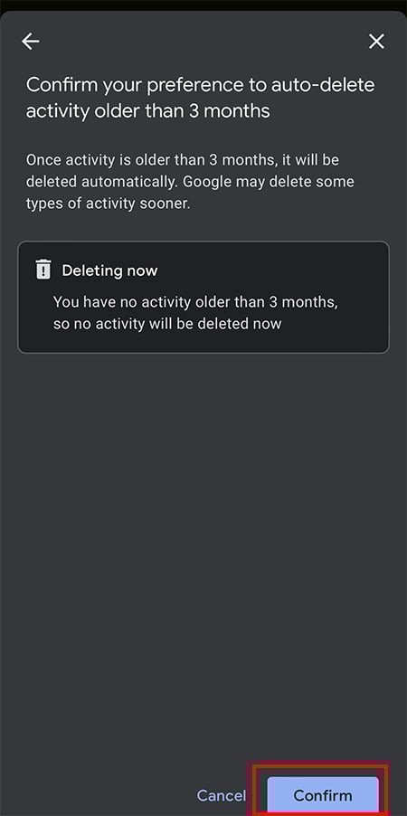 Escolha a opção Auto-excluir atividade anterior a e defina o período de tempo.
