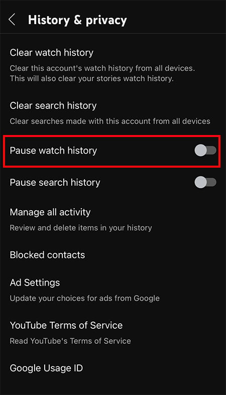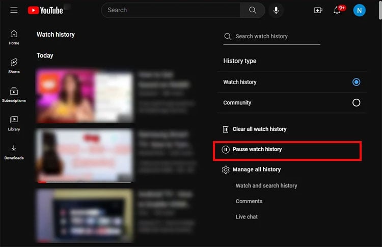 O YouTube tem um recurso de pausa no histórico que pode ser útil enquanto assiste ao YouTube no dispositivo de alguém temporariamente. Ele não salvará nenhum histórico depois que você habilitar esse recurso. Mas você deve observar que isso não excluirá suas atividades anteriores.