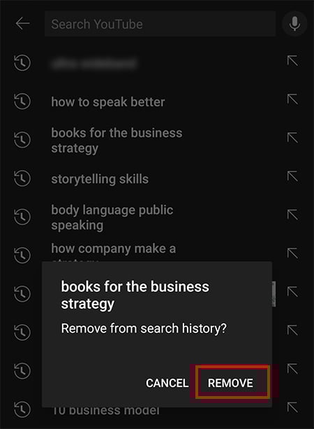 Agora, destaque o vídeo e clique no ícone X para removê-lo do histórico de exibição.