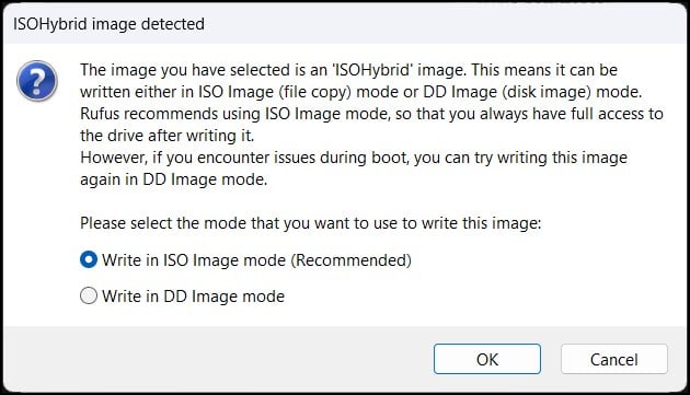 Escolha a opção Gravar no modo de imagem ISO (recomendado) e clique em OK.