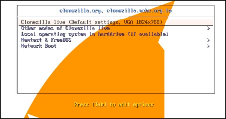 Clonezilla Live é basicamente um sistema operacional baseado na distribuição GNU/Linux. Depois de inicializar no Clonezilla Live USB, o sistema operacional carrega, oferecendo várias opções de clonagem de unidade.