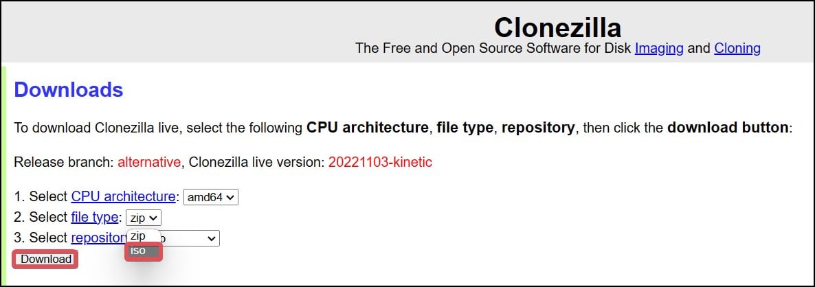 Baixe o Clonezilla Live ISO arquivo.