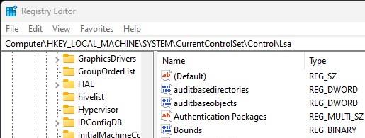 HKEY_LOCAL_MACHINE\SYSTEM\CurrentControlSet\Control\Lsa