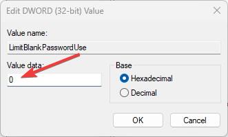 Clique duas vezes no valor”LimitBlankPasswordUse”.