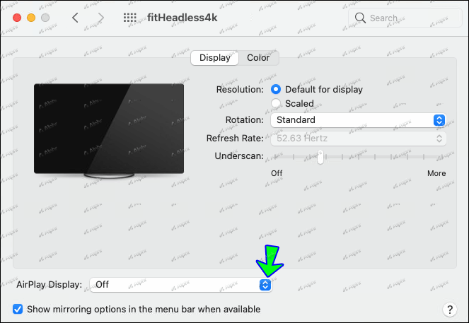 Clique no menu suspenso ao lado de”AirPlay Display”.