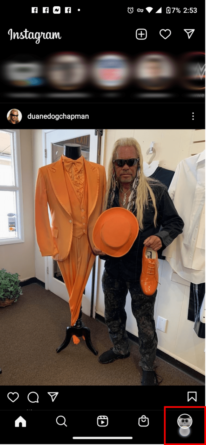 Abra o aplicativo Instagram para Android e clique em seu “ícone de perfil” na seção inferior direita para abrir sua página de perfil.