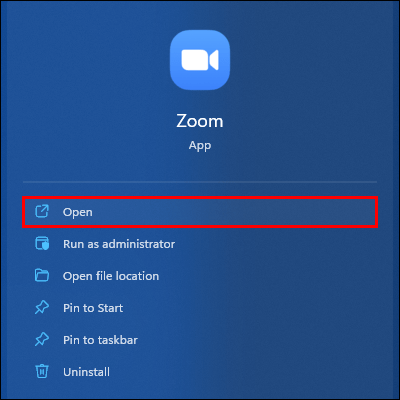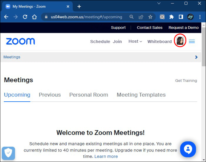 Abra o aplicativo Zoom para desktop em seu PC. Você deve ver a foto do perfil selecionada no canto superior direito da tela.