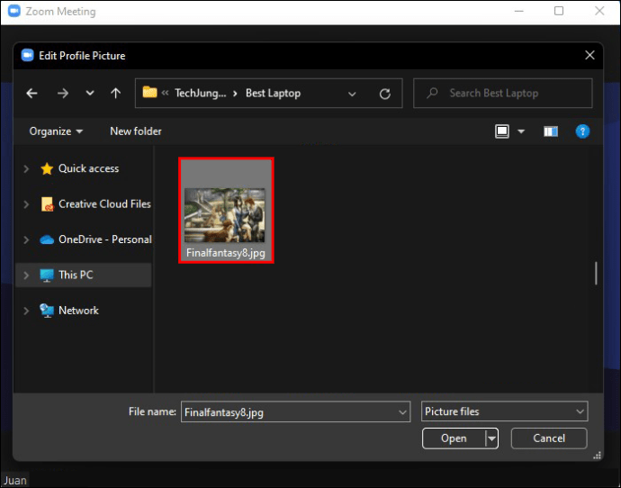 Selecione sua foto e clique em”Abrir.”
