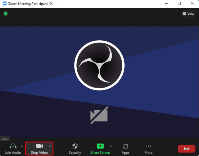 Selecione o ícone”Parar vídeo”na parte inferior da tela quando você está em uma reunião.