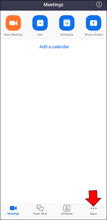 Abra o aplicativo móvel Zoom e toque no ícone”Mais”. Esse ícone é representado por três pontos horizontais.