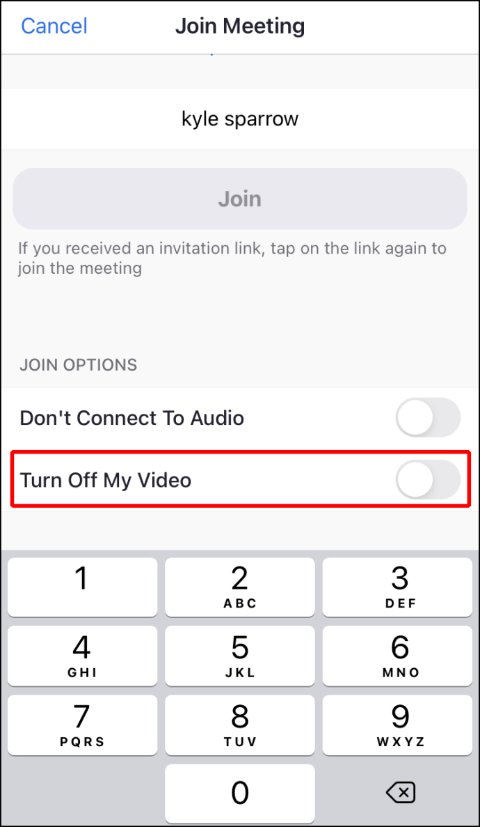 Toque na opção”Desativar meu vídeo”quando estiver esperando para entrar em uma reunião.