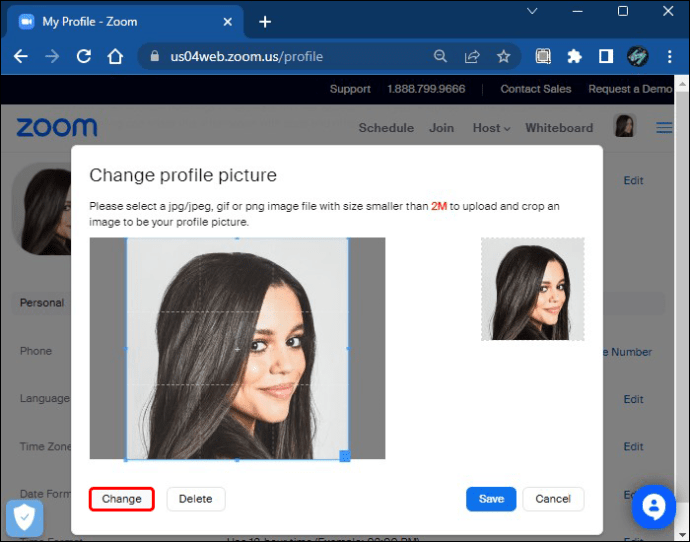 Escolha sua foto e use as ferramentas de ajuste de imagem do Zoom para garantir que ela seja exibida corretamente.
