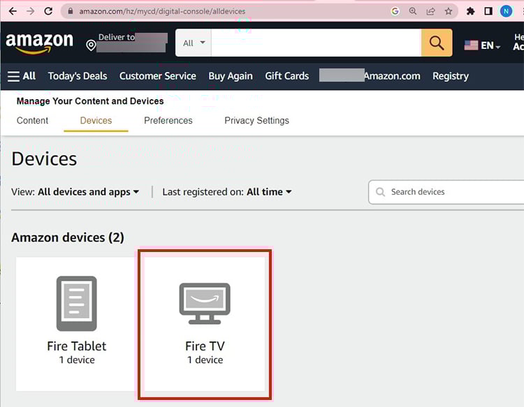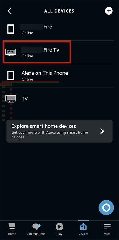 Agora, clique no seu dispositivo Fire TV stick.