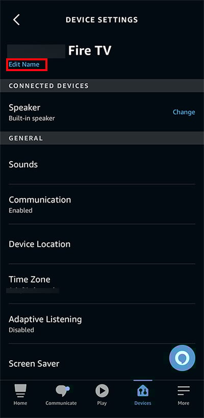 Clique no dispositivo Fire TV stick que você deseja para renomear. Ao lado do Firestick, selecione Editar.