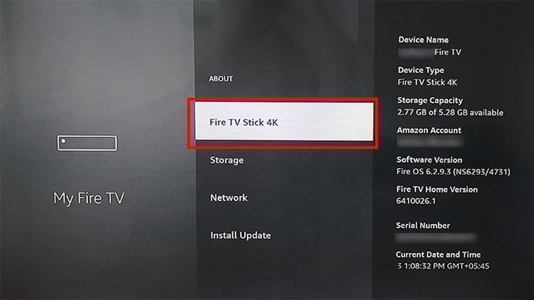 Primeiro, verifique o nome atual do seu Firestick nas configurações do dispositivo. Isso ajudará você a encontrar o dispositivo em sua conta Amazon. No entanto, você pode pular esta etapa se já souber o nome do seu dispositivo.