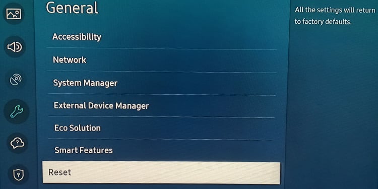 Você pode redefinir sua TV de fábrica como último recurso para resolver o HDMI não está funcionando problema. Isso ajudará a resolver se houver falhas ou configurações incorretas na TV.