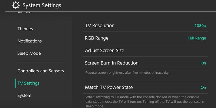 Por exemplo, se você está tentando conectar o Nintendo Switch à sua TV, deve ajustar a resolução da TV e o intervalo RGB nas configurações de TV do console.