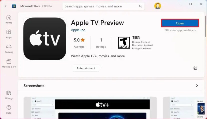 Instale a Apple TV no Windows 11 da Microsoft Store