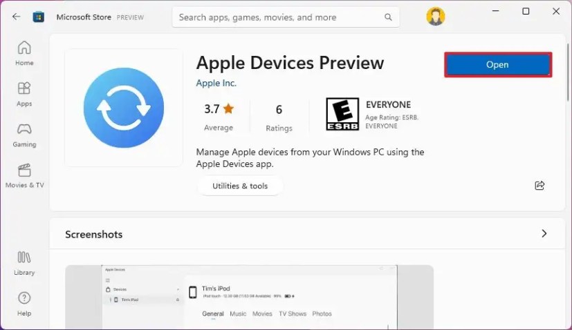 Instalar dispositivos Apple no Windows 11 da Microsoft Store