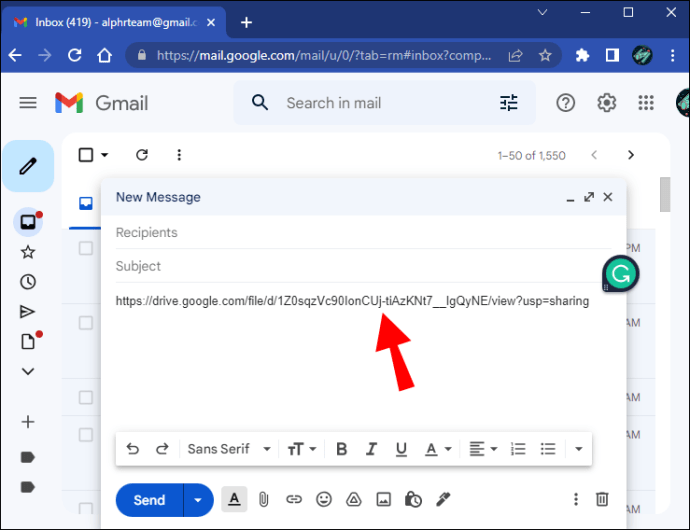 Abra seu e-mail e cole o link no corpo da mensagem.
