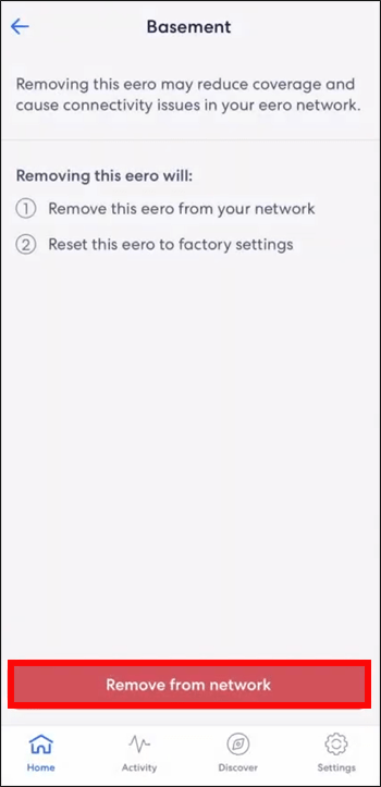 Toque no botão”Remover”com o nome do Eero que você deseja excluir.